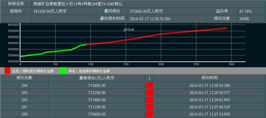 青海省产权交易市场依托完善的网络竞价系统,本着公开透明、认真负责、组织严密的公正处置机制对委托标的物进行公正、公开、公平的网络在线竞价,随时随地的服务于竞买方,众多竞买人通过各自的电脑终端,快速的将一串串数据指令注入房产竞价交易系统中,众多互不谋面的参与者在网络空间中对自己感兴趣的标的物进行在线竞价,其中西部矿业香格里拉小区10号4号楼264室76.02的一处房产在限时竞价时段网络报价呈现井喷状态,从竞价系统的大屏幕看到,该处房产从竞拍的20来分钟时段内,报价从34万元一路猛增到57万元,网络报价次数高达294次之多,溢价率高达67.38% ,竞争激烈可见一斑。这种不受时间、空间、地点、人数限制的“虚拟卖场”充分发挥了网络无限宽广、竞价不受限制的优势,为以后公开、公正的处置国有资产提供了一个非常有效的方式。也有效的防止了暗箱操作及不规范操作而导致的国有资产流失,目前西部矿业委托的已挂牌转让的香格里拉房产项目,意向报名人数达到上千人,实际参与竞拍的已有上百人,充分证明我市场在提高资产增值,节约交易时间,提高工作效率等方面发挥了重要的效益功能。此次网络竞价的成功,也为今后同时处置价值低、品种多、数量少、分布广的国有资产处置提供了一个科学、规范的平台,更为逐步建立健全“公开、公平、公正”处置国有资产的长效机制奠定了基础。