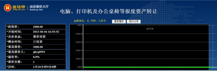 此次活动共有7位竞买人参加网络竞价,起拍价为2000.00元整,经过1次报价,最终以2000.00元整成交,项目增值率达0.00%。