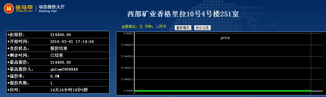 西部矿业香格里拉10号4号楼251室项目结果公示