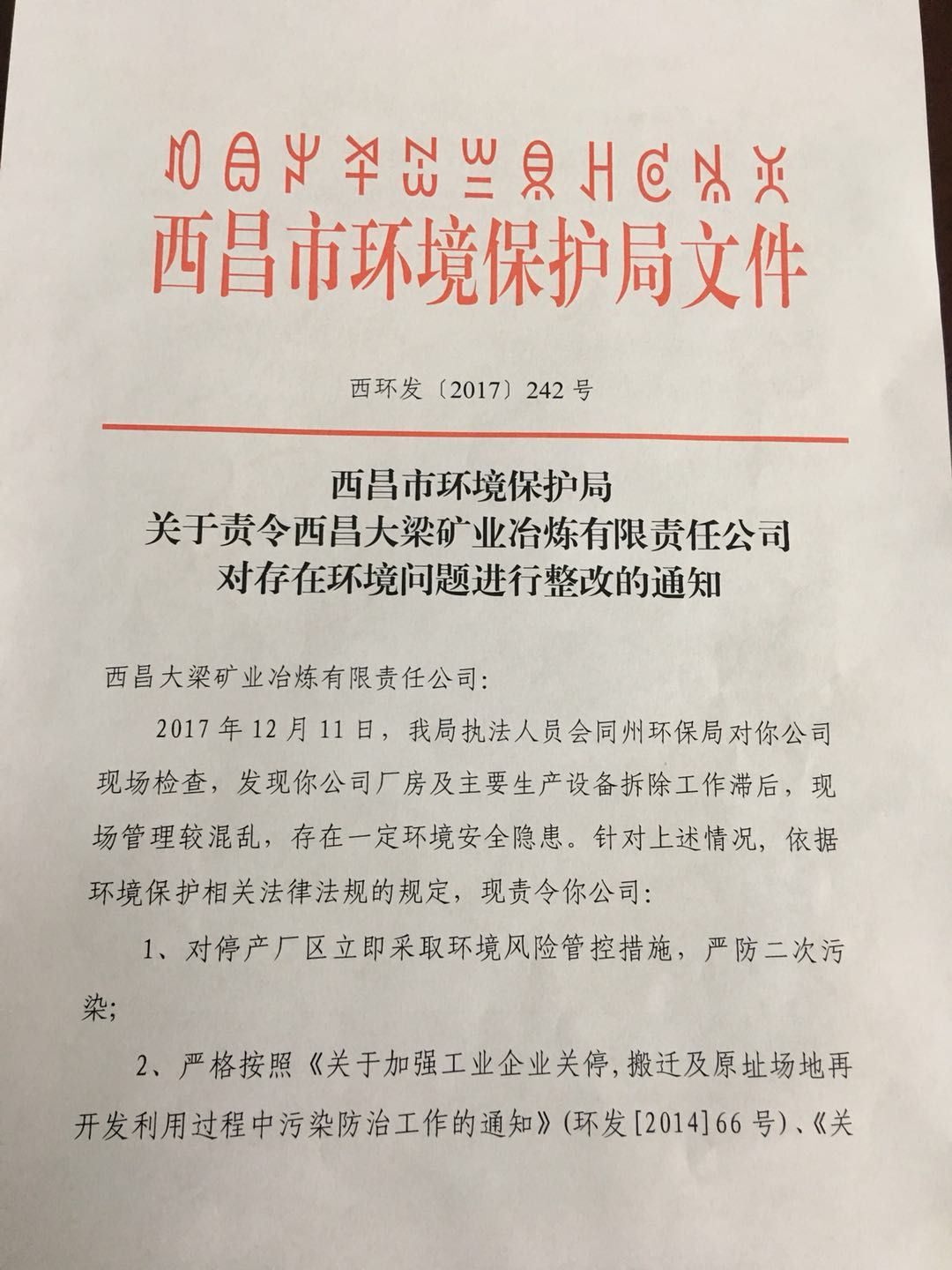 关于西昌大梁矿业冶炼有限责任公司所拥有的机器设备公开转让公告