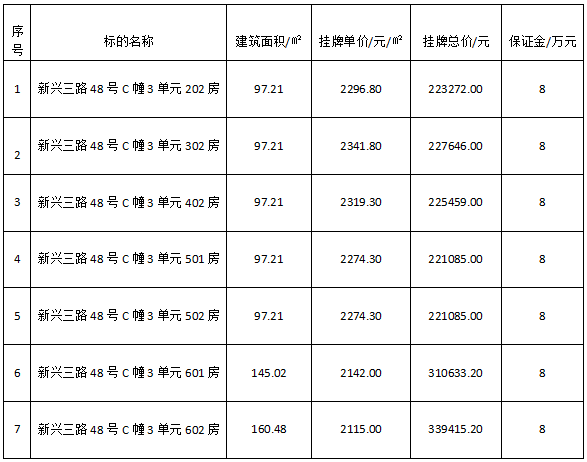 受黄河电力检修工程有限公司委托,依据《中华人民共和国企业国有资产法》《企业国有资产交易监督管理办法》(国务院国资委、财政部第32号令)《青海省企业国有资产交易监督管理办法》,青海省产权交易市场对该公司所持广西梧州市新兴三路48号7套房产公开转让,挂牌总价:176.85954万元。